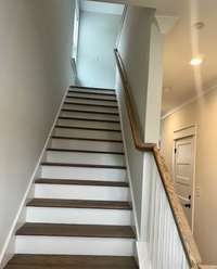 1577 Plan - Experience luxury and convenience in this 2- story townhome featuring 3 bedrooms and 2. 5 bathrooms, all with a maintenance- free exterior. Nestled in a peaceful setting and within walking distance to the Music City Star train station, it’s the perfect blend of tranquility and accessibility. The kitchen boasts a tile backsplash and quartz countertops, seamlessly opening to the great room for ample entertaining space. Oak tread stairs lead to a versatile flex room, while the primary bedroom features double large walk- in closets and a double vanity with quartz countertops.